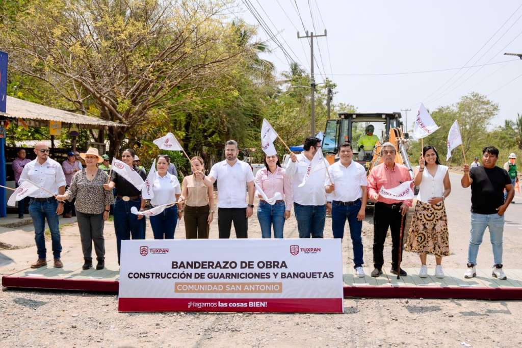 Tuxpan, Veracruz; 16 de abril de 2026.- Como parte de una gestión que inició desde su etapa como diputado local, el presidente municipal Daniel Cortina Martínez dio el banderazo de inicio a la construcción de 5 kilómetros de guarniciones y banquetas en la zona de playa, una obra que beneficiará de manera directa a los habitantes del poblado San Antonio y, de forma general, a toda la población tuxpeña.