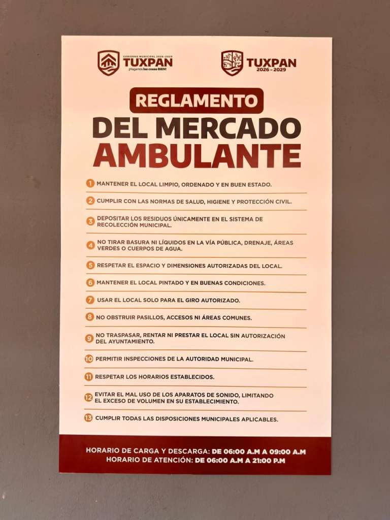 El Mercado Ambulante, ubicado en la calle Clavijero número 51 de la zona centro, operará con horario de carga y descarga de 6:00 a 9:00 horas, mientras que la atención al público será de 6:00 a 21:00 horas.